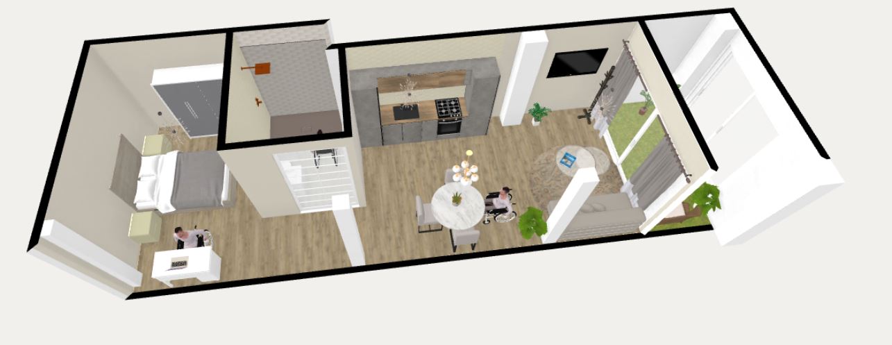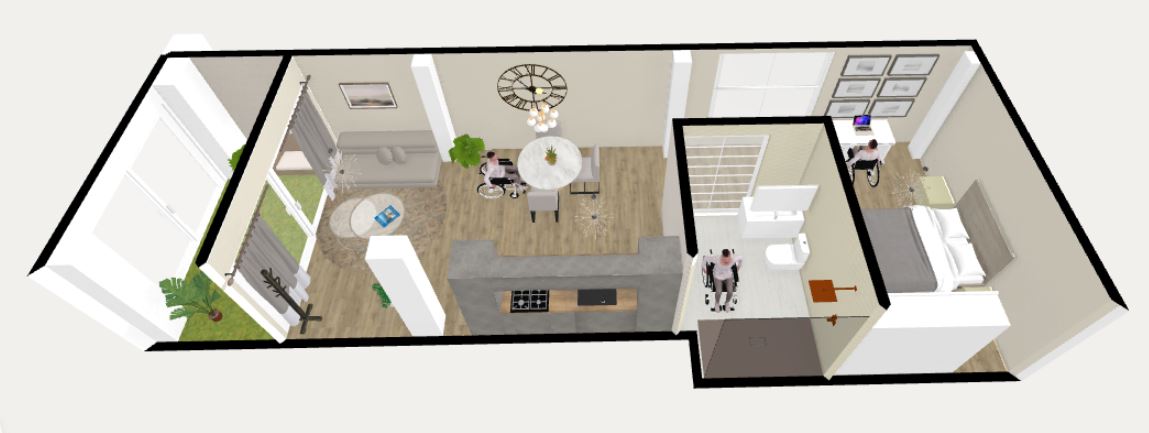 Aquí tienes un proyecto de vivienda en planta baja donde moverte con facilidad, exclusivo para personas con discapacidad motora igual o superior al 33% .